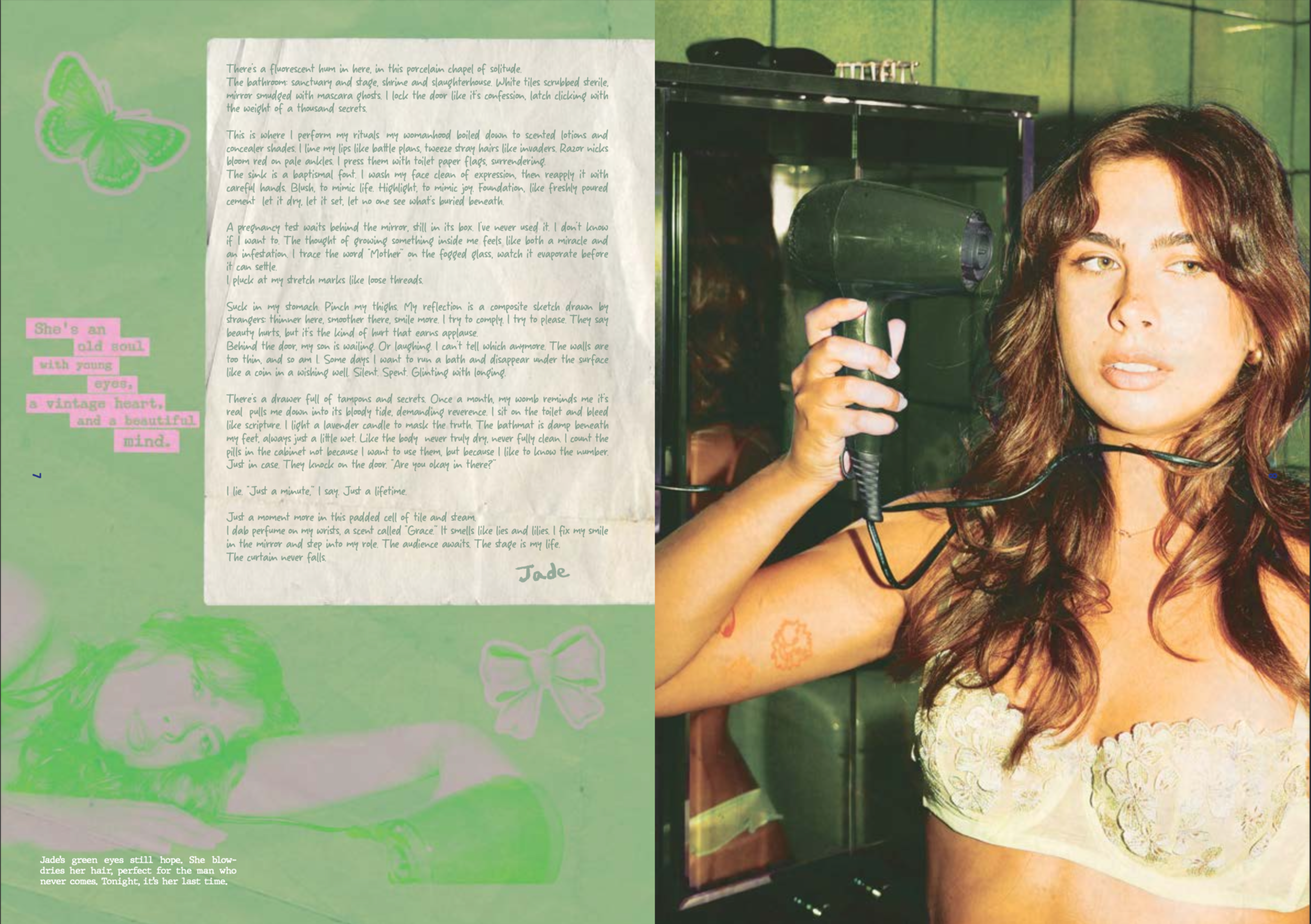Women’s sexuality is not performance, it’s nature. Yet stereotypes reduce it to roles: the perfect home, the flawless look, the silent smile. This magazine uses food as a symbol of raw, untamed femininity to explore how these ideals suppress desire, power, and self. It’s time to break the mold, and remember who we are.